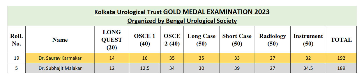 Gold Medal Examination for 2023 was held on 6th August, 2023 at Fortis Hospital, Anandapur, Kolkata