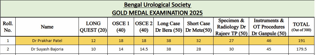 Gold Medal Examination 2025 was held on Saturday, 25th January 2025 at UROLOGY Seminar room, IPGMER&R